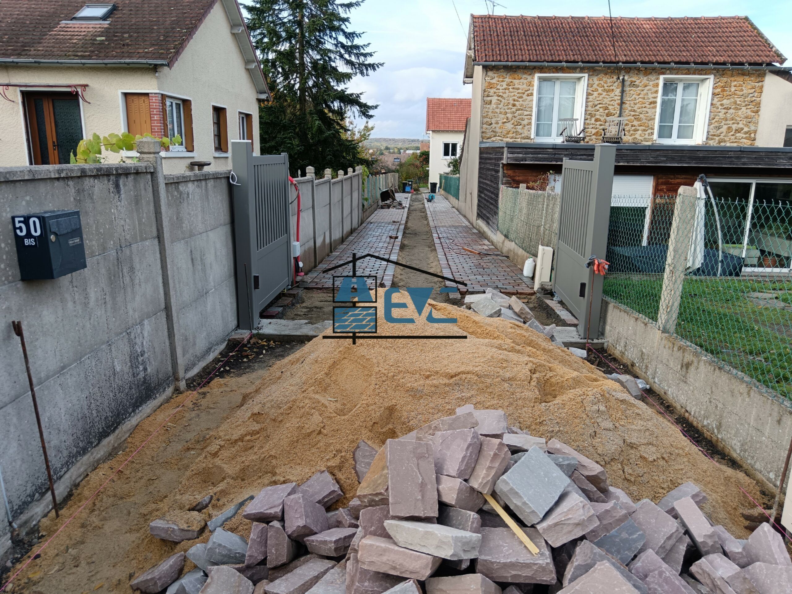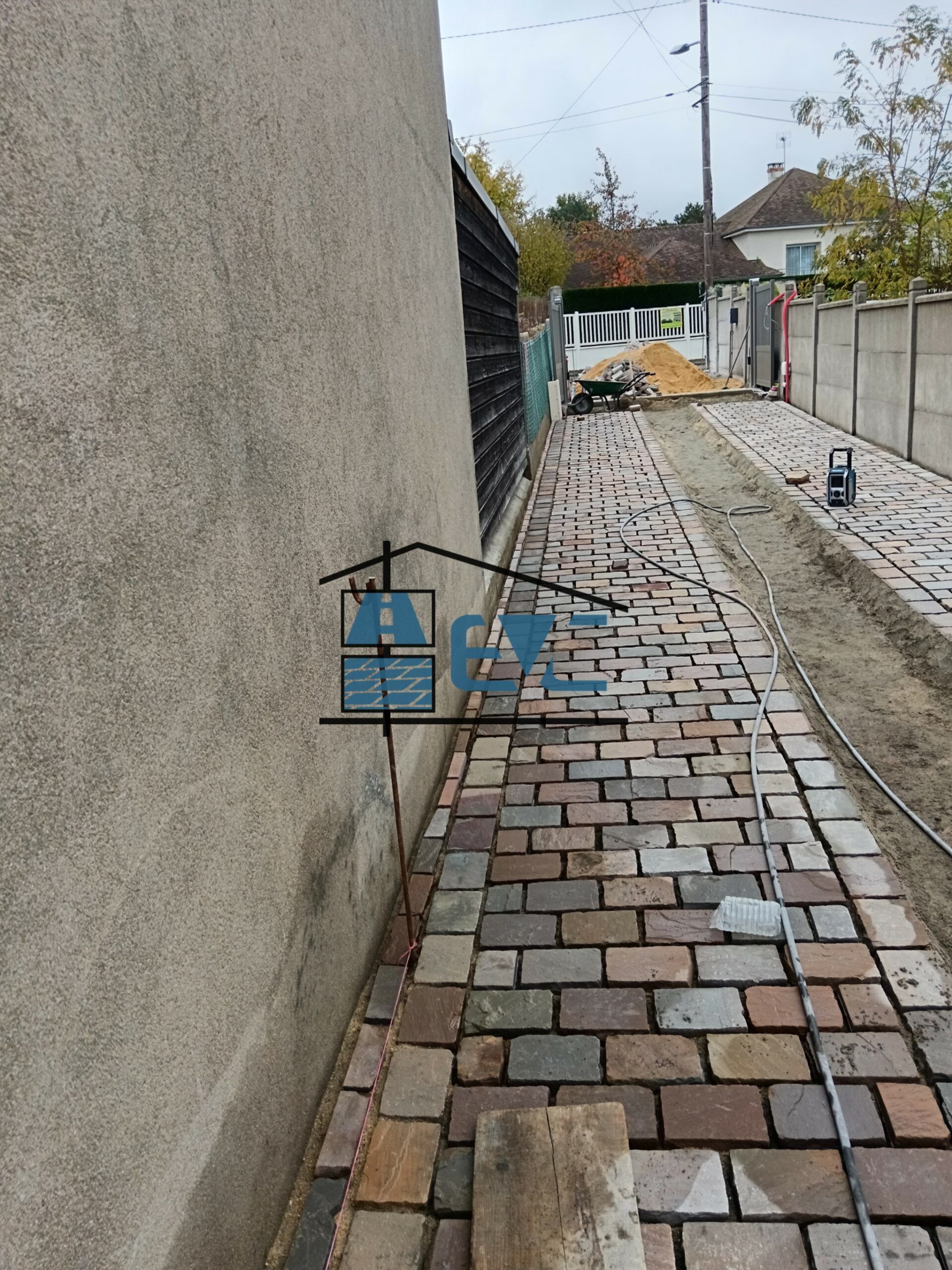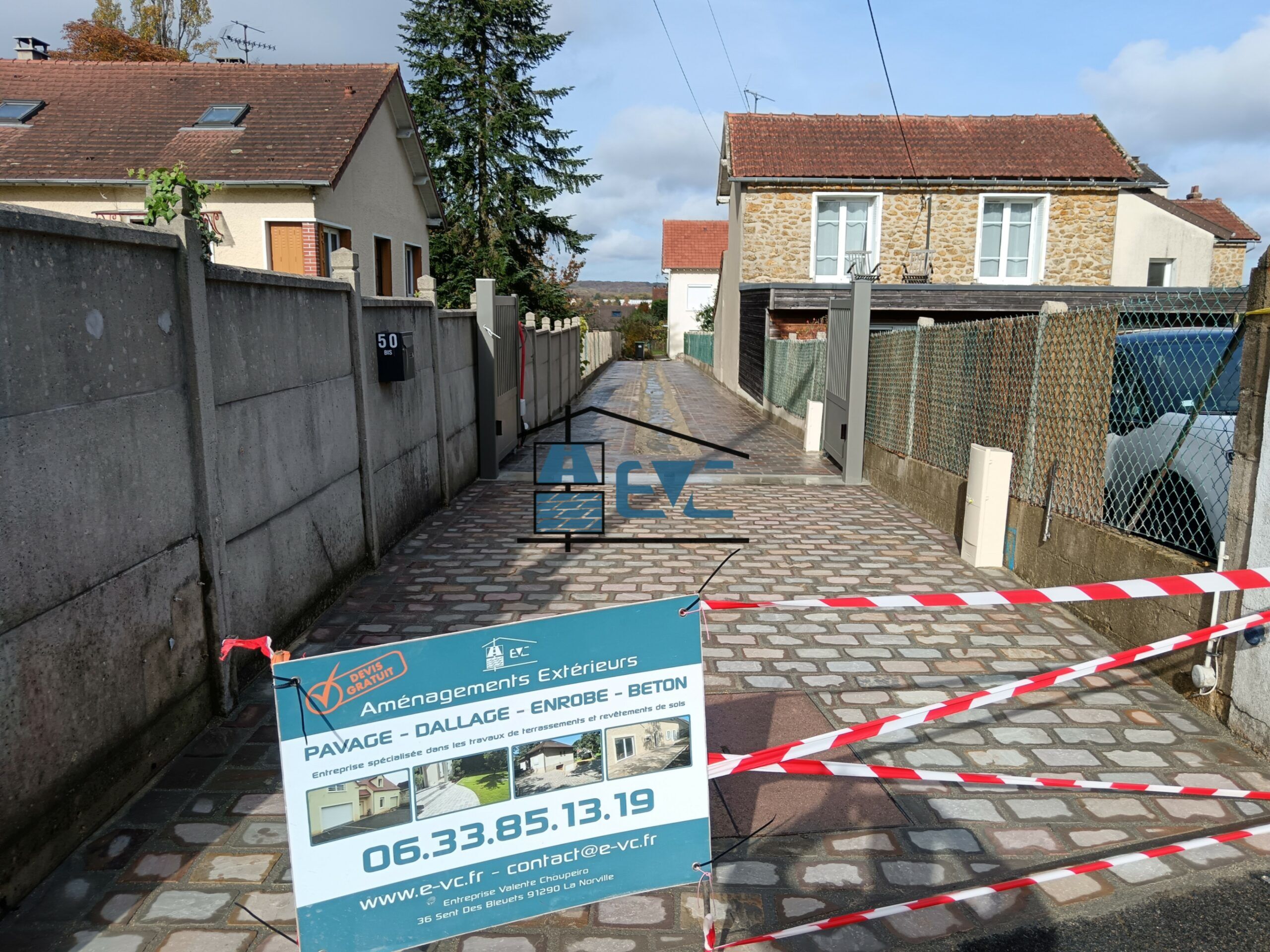 Découvrez notre allée pavée en grès des Indes à La Norville, un chantier signé