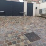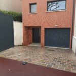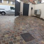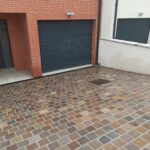Travaux dans la commune à Antony dans les Hauts-De-Seine pour la réalisation d’une rampe de garage en pavés kandla multi.