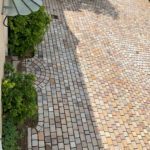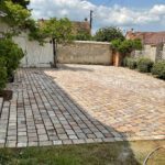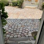 Travaux de terrassement et pavage en grés des inde ( kandla multi ) dans la petite commune de Authon La Plaine dans le 91 en Essonne.