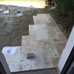 - Pose des dalles travertin 1er choix épaisseur 3CM sur chappe avec treillis soudé