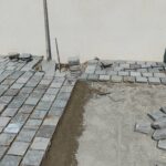 - Pose des pavés sur mortier