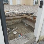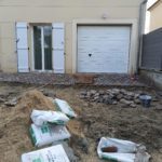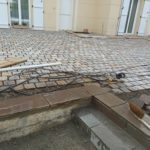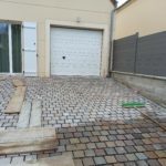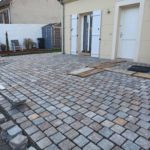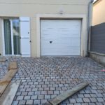 Travaux d’aménagement extérieur en pierre naturelle kandla multi 14X14 pour une surface de 90M2 dans la commune de Mennecy