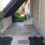 - Pose de Travertin Opus 4 à l’entrée et création d’un chemin d’accès en Travertin