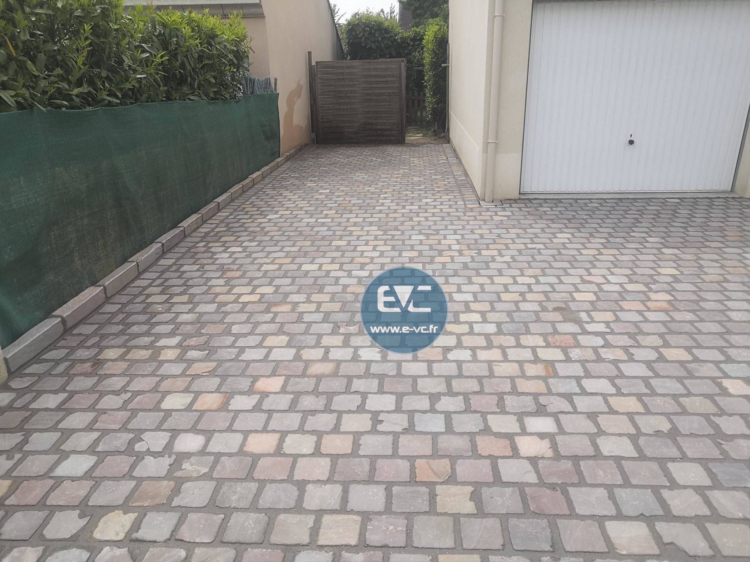 Terrassement et aménagement extérieur en pierre naturelle grès des inde pour l'agrandissement d'un parking dans la commune de Angervilliers ( 91 ). Travaux réalisé chez le client : Terrassement et…