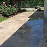 Terrasse en Travertin et pavage en grès des Inde Blanc Calcaire
