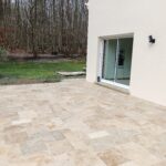 Création d’une terrasse travertin opus romain dans la commune de Terrasse en Travertin Opus Romain – Saint-Maurice-Montcouronne 91530.