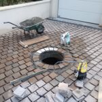 - Pose d’un regard de visite pour puisard carrossable avec buse béton