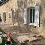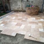 Terrasse en Travertin Opus 4 Formats dans la Commune de Authon-La-Plaine en Essonne 91.